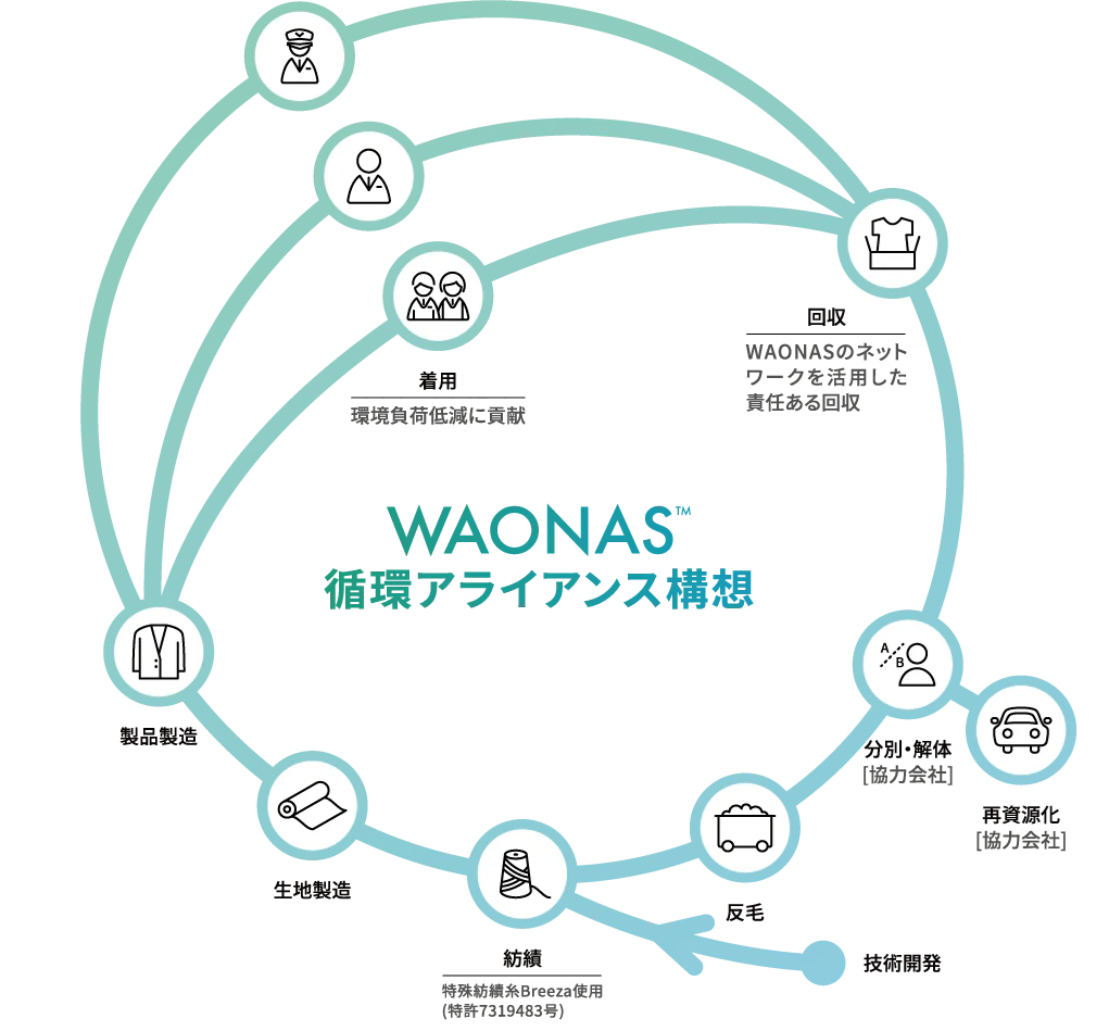 このように、卒業生から新入生へと制服を通じてバトンタッチするECO循環を【WAONAS】で実現しています。